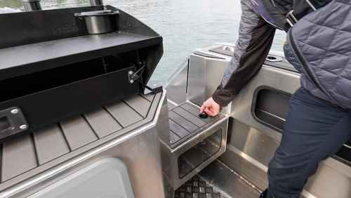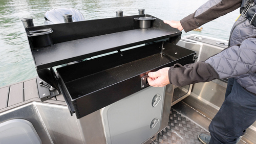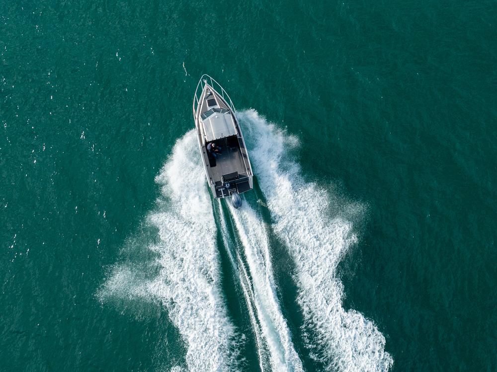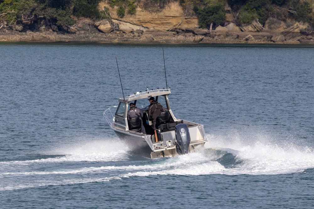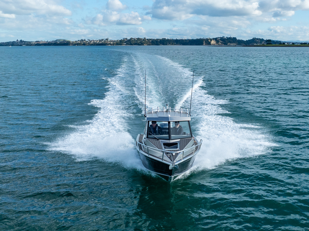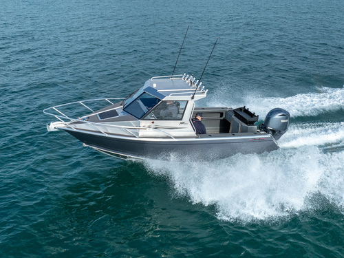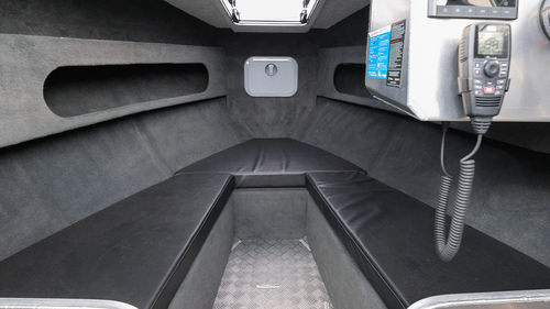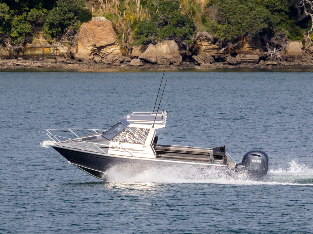 Our hardcore fish and dive boat, sporting an alloy hardtop in lieu of our traditional aluglass build, with a no fuss interior for easy cleaning.
